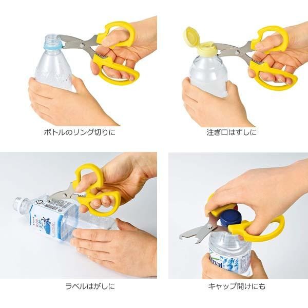はずしにくいボトルのリングもキレイに分別できるハサミです。注ぎ口はずし、ラベルはがし、キャップ開けにも便利です。