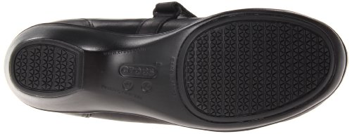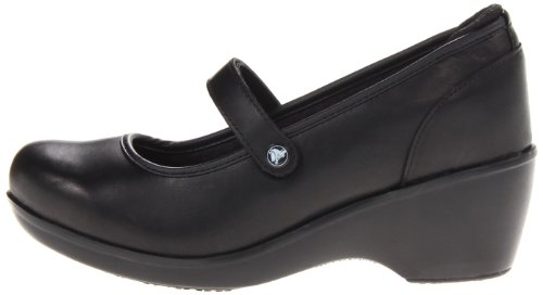 Vamp band with hook-and-loop closure ensures easy on/off wear and a custom fit. Mesh liner wicks moisture away to help keep the foot feeling cool and dry. Ergonomic footbed reduces the load on feet, legs and back, while circulation nubs help stimulate blood flow. High wedge heel designed for stability and comfort. Crocs lockâ"¢ tread exceeds industry slip resistance standards on oil, water, soap and a wide variety of slippery surfaces as tested to ASTM F1677 standards.Feature