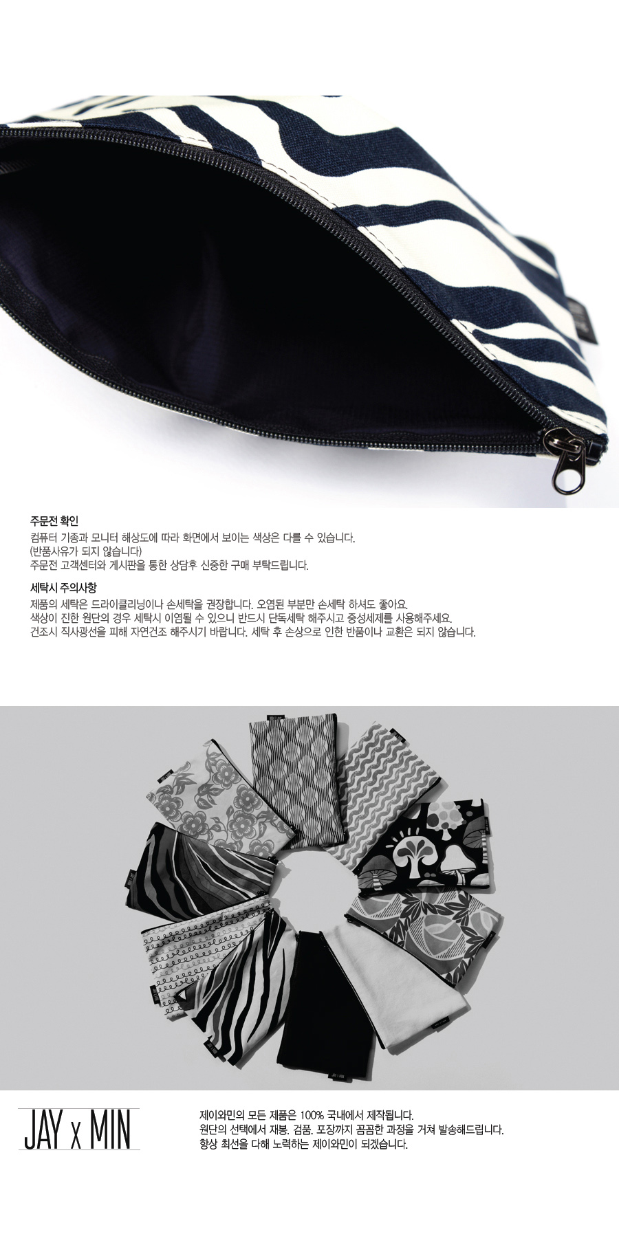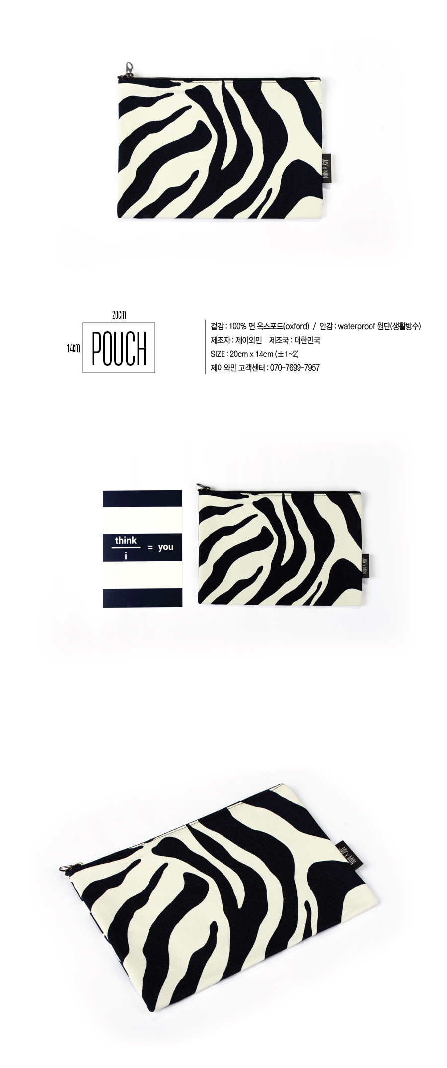 두꺼운 옥스포드 원단으로 제작된 파우치입니다.
