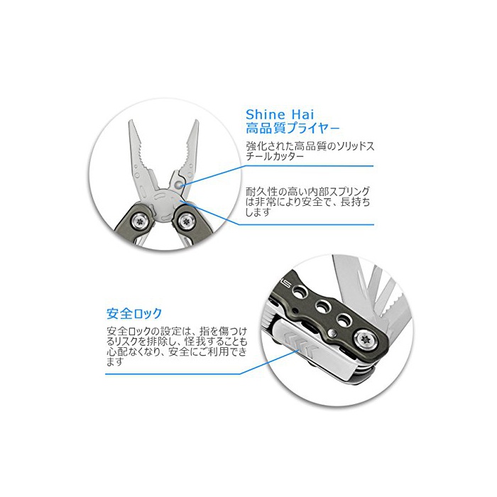 원본상품명: Shine Hai マルチツル 多機能型ペンチ プライヤ ガド型マルチツル付 ヤスリ アウトドア ナイフ 折りみ コンパクト 便利ツル 防災必須 ケス付