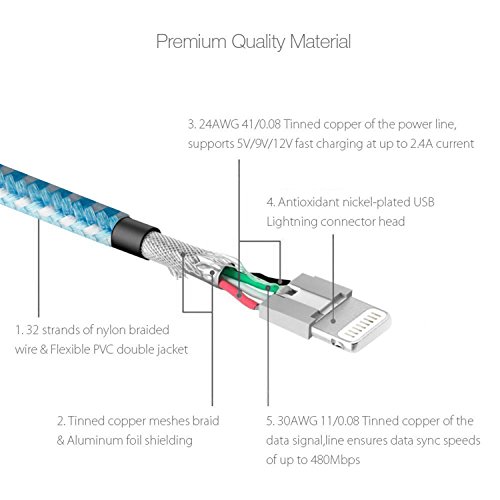 - [Great Charging Performance]Ordinary cable about 2 times of ~ 2.4 A output fast charging, charging time savings.Its durability, connectivity, compatibility, and performance is 100% Guarantee.