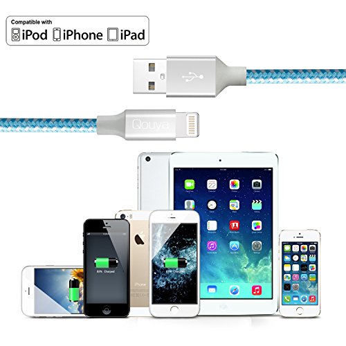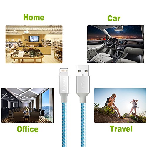 Lightning Cable, 3Pack 3FT 6FT 10FT Nylon Braided Charging Cable Cord Lightning to USB Cable Charger Compatible with iPhone 7/ 7 Plus/6/6s/6 plus/6s plus/ 5s/5c, iPad, iPod and More (White Blue)