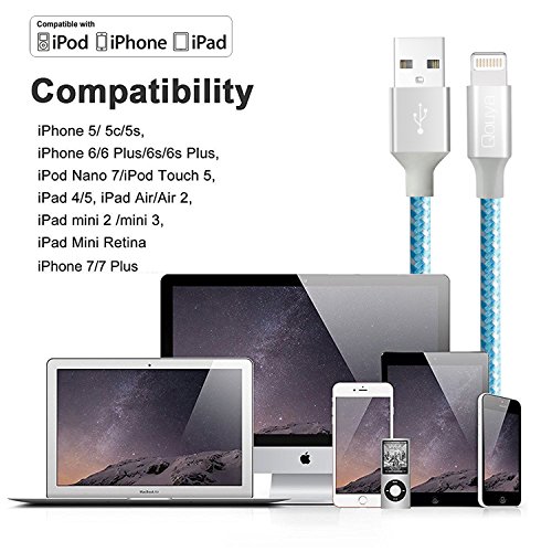 - [Compatibility]Compatible with iPhone 7/7 plus/6/6S/6 plus/6S plus/iPhone 5/5C/5S/SE/iPad/Air/Mini/Mini2/iPad 4/iPod 5/iPod 7 rapid charging and data synchronization.