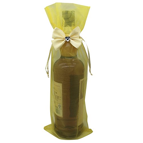 MELUOGE 10pcs 5.5x14.6 inches 14x37cm Wine Champagne Bottles Organza Drawstring Jewelry Pouches Bags Party Wedding Favor Gift Bags Wrap Bottles Of Wine (Yellow)