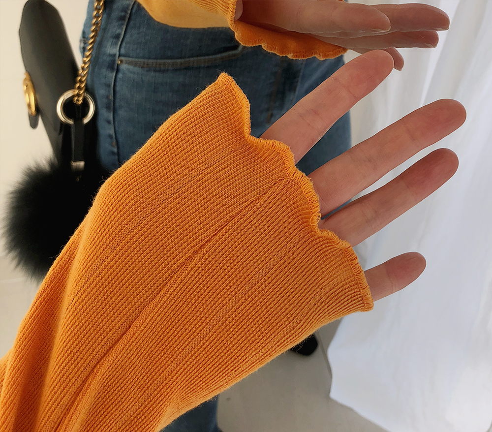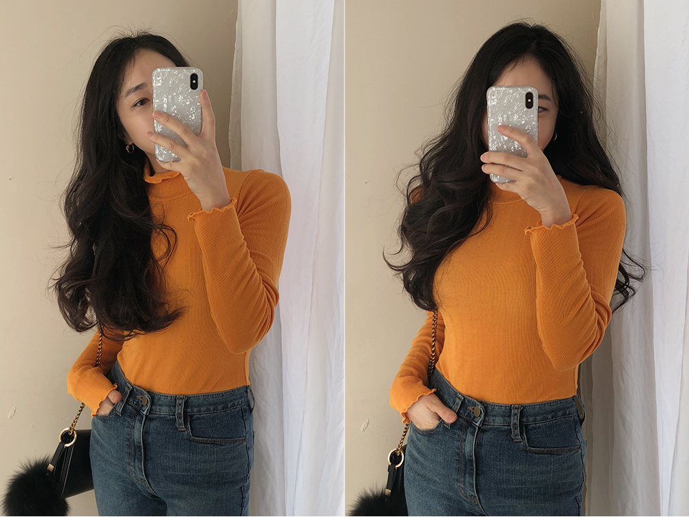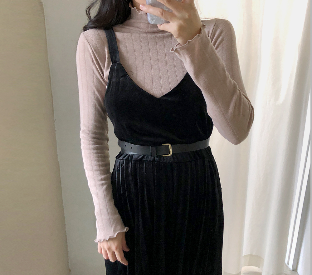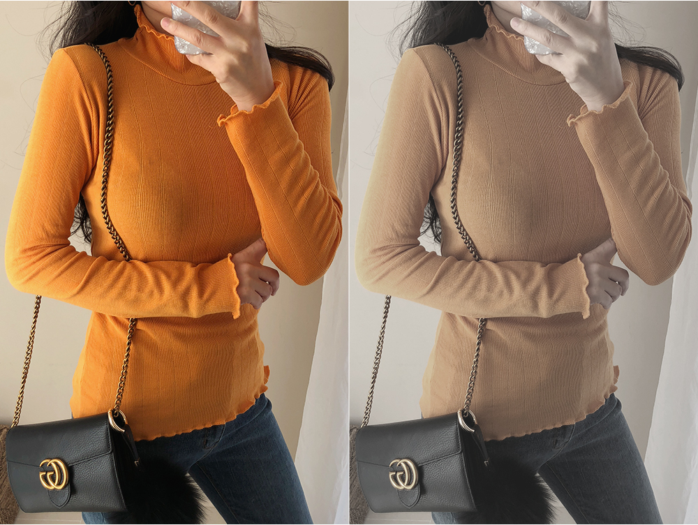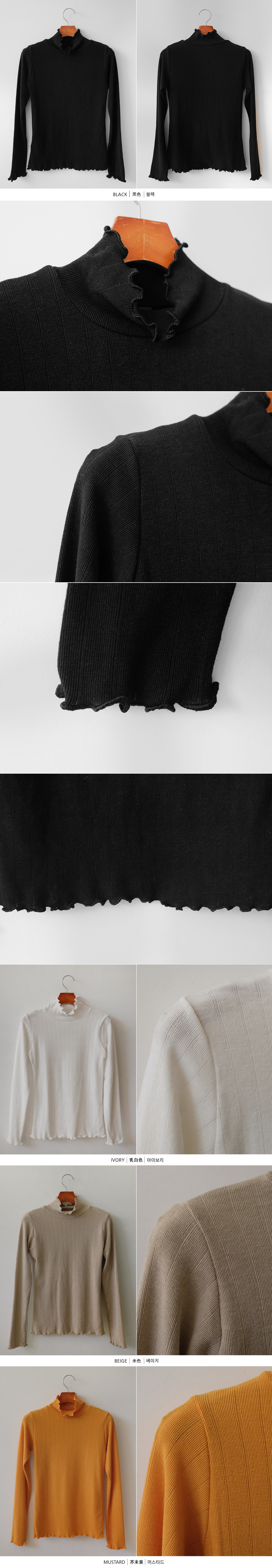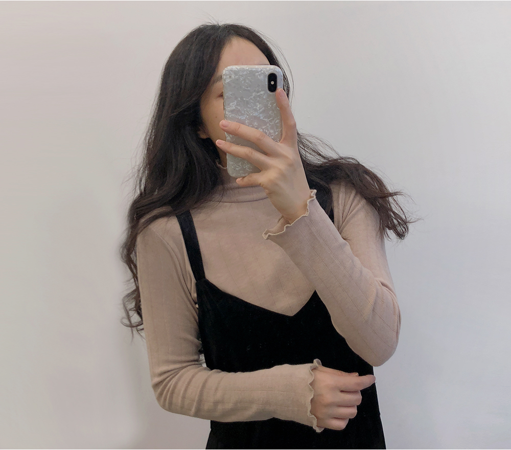 물결 폴라 슬림 골지 니트 티셔츠