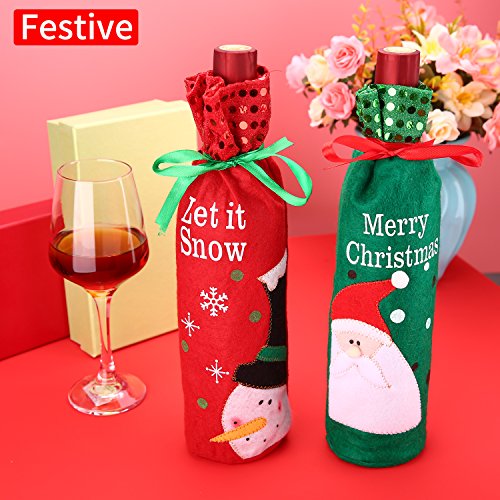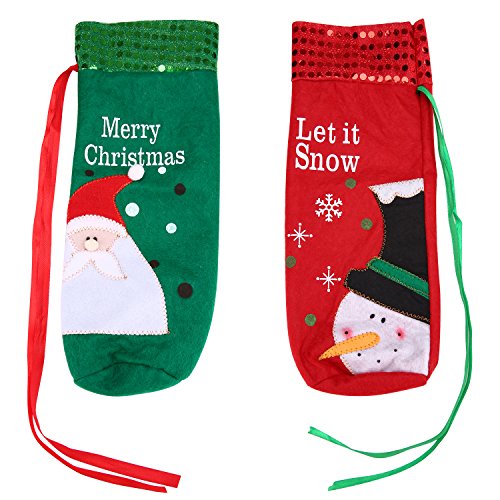 Wine Bottle Cover Set Bags Wrappers Dining Table Decor Gift Bags Uerlum Christmas Home Decor/Santa&Snowman Styles/Red&Green/Pack of 2