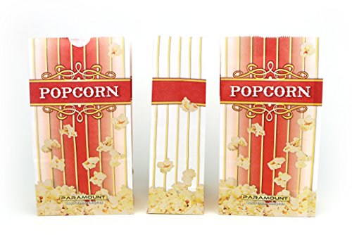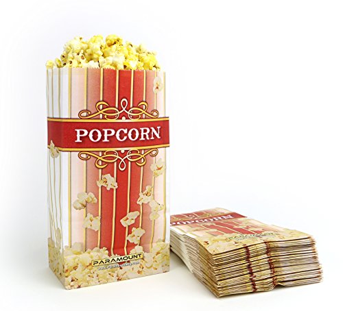 100 Popcorn Serving Bags - 'Large' Standalone Flat Bottom Paper Bag Style