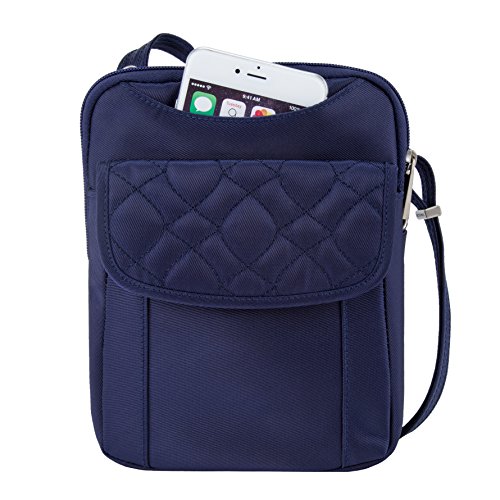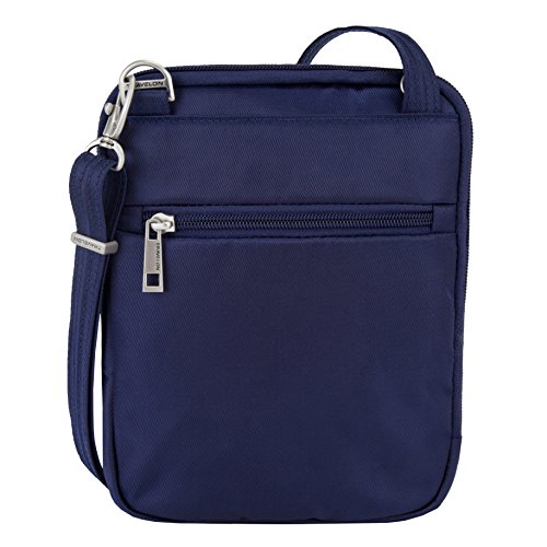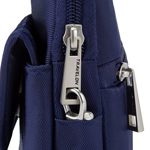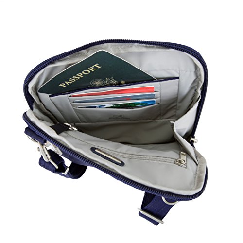 This slim bag is great for day trips, or sightseeing! Offers slash-proof, locking main compartment and shoulder strap which can be locked to a post or table. Comes with RFID blocking card and passport slots.. Also has a passport slot, several interior pockets, and a removable LED light.Feature