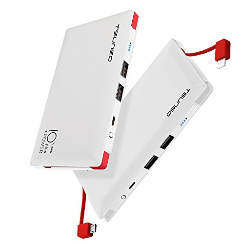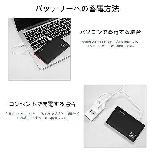 大容量の10000mAhで、iPhone6s に約4回、iPhone7 Plus に3回、Galaxy S6に2.5回、 iPad Mini に1回フル充電が可能です。
