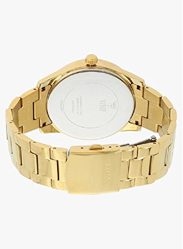 Simple and classy, this gold coloured analog watch comes from GUESS. Made from stainless steel, this watch has a round dial with black face and stick markers. Simply style this watch with casuals or formals of your liking to look stylish.Feature