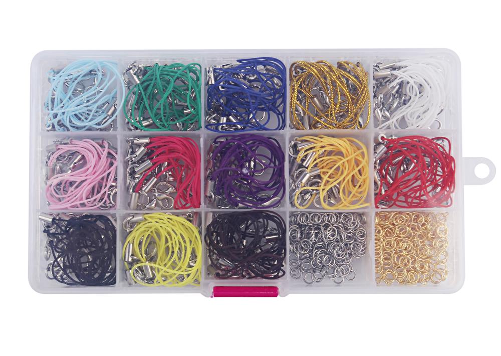 カニカン付き 携帯 ストラップ 13色 195本セット 収納ケース付mmk-h89【1~2日発送】