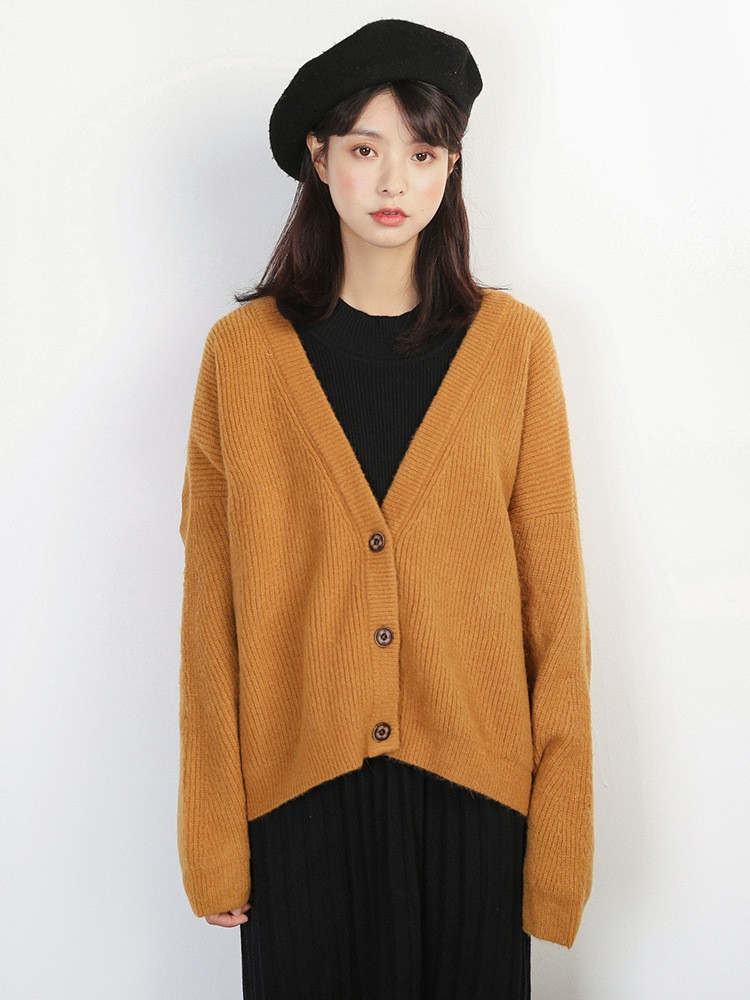 サイズ(cm) F (フリーサイズ):着丈:59cm  バスト:128cm 袖丈:47cm注意:平置き実寸採寸のため生地の伸縮性や素材によっては多少の誤差が出る場合がございます。ご了承下さい。特徴:純色カーディガンが登場シルエットが大人っぽく女性らしいのがポイントカラバリも2色と豊富で、お気に入りの色をチョイスできるデニムにもスカートにも合わせやすく着まわし力抜群のアイテム レトロ風なデザインとゆったりサイズを合わせて、コートはもっとファッションになる