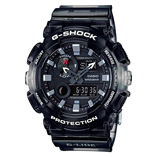 G-Shock by Casio GAX-100MSB-1A watch. The summer 2017 model of the G-SHOCK G-LIDE lineup of sports watches, which is a favorite choice among the world's top extreme sports athletes.This model is based on the big case GAX-100, whose combination analog-and digital format delivers the information you need in an instant. The GAX-100MSB model was inspired by the ever-changing spectacles on display in the great natural beauty of Hawaii. Semi-transparent resin is formed using mixed color molding that reproduces the twilight gradations reflecting off of a big wave or the ocean surface.Comes equipped with Tide Graph, which is a must for surfers. The GAX-100 has a dial at 10 o'clock that is an analog tide graph. Moon Data and temperature measurement also provide intuitive tide information. Imported.Feature