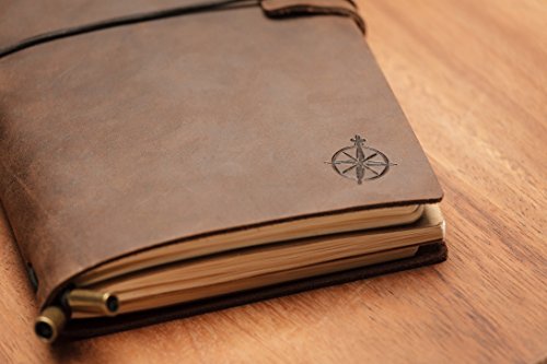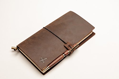 Leather Travel Journal | Leather Bound Travelers Notebook, Refillable | Perfect for Writing, Poetry, Log Book, Planners, Travellers, Diary, Sketchbook. Vintage Style | 8.5 x 4.25 in | Lined Inserts
