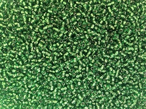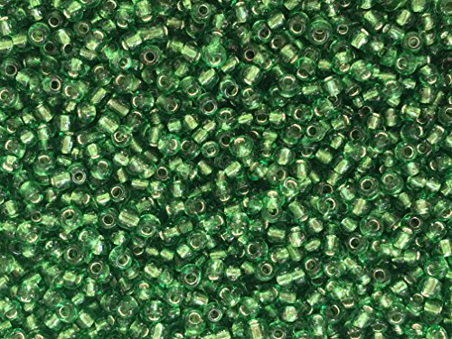 Czech Glass Seed Beads Emerald Green Silver Lined Size:11/0 50 gr / 1.76 oz