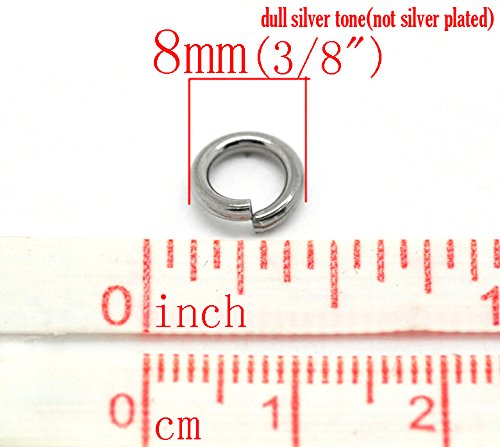 VALYRIA 200pcs Silver Tone Stainless Steel Open Jump Rings Connectors 8(3/8")x1.5mm