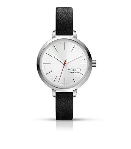 Emelia Monier M Focus Silver Tone Women's Watch with Black Leather Strap EML005-01BL
