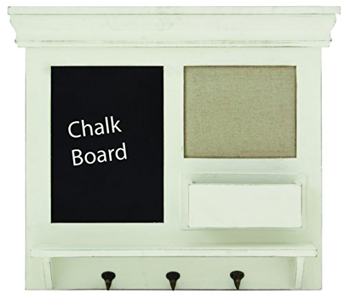 Benzara Wooden Chalkboard Wall Shelf with Three Metal Hooks