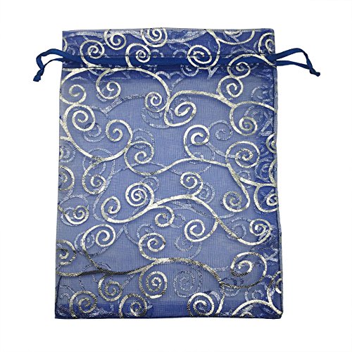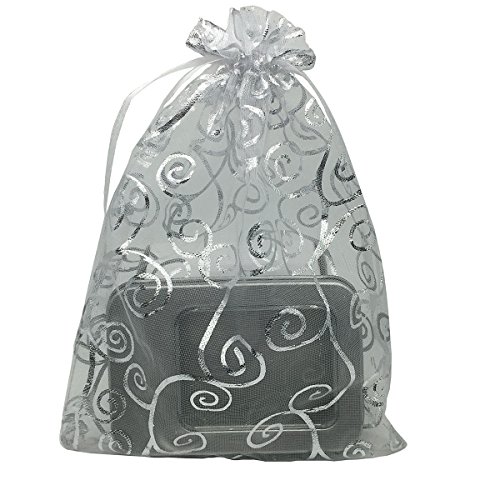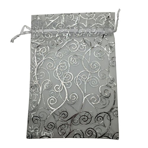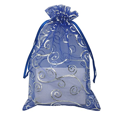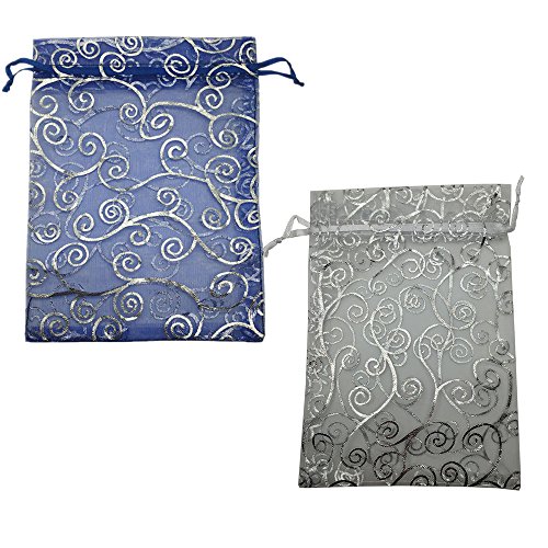 Sosam 100PCS 4x6" (10x15cm) Drawstring Organza Jewelry Favor Pouches Wedding Party Festival Gift Bags Candy Bags (4x6" (10x15cm), Blue Silver and White Silver)