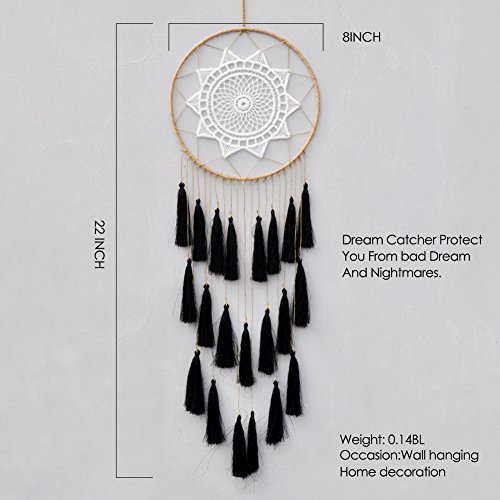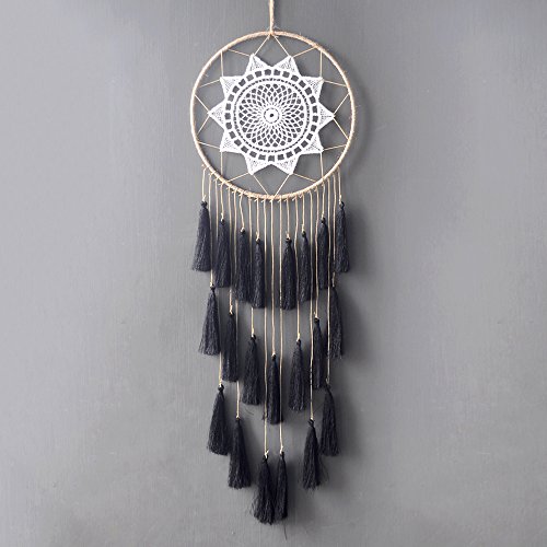 Artilady 8inch handmade tassel dream catcher wall decoration (black)