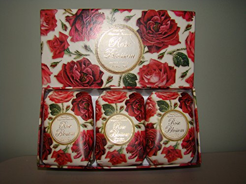 -. Feature : Delicately Fragrant Rose Blossom Hand Made Italian Soaps / All natural 100% vegetable based with no dyes or chemicals / Beautiful detailed gift box covered in red roses & rose buds / Set of 3 individually wrapped bars 7.05 ounces each / Made in Italy