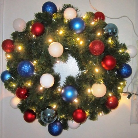 Queens of Christmas WL-GWSQ-02-PAT-LWW Pre-Lit LED Sequoia Christmas Wreath Decorated with Patriotic Ornament Collection, 2', Warm White