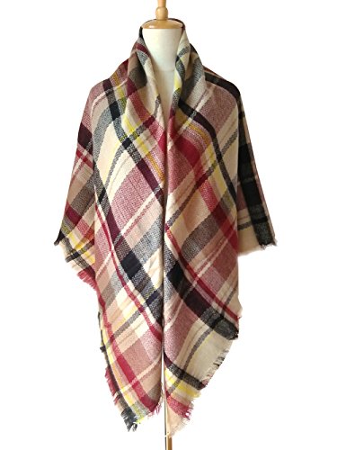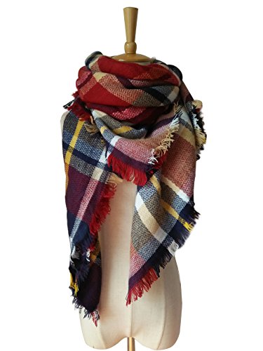 AUSELILY Women's Stylish Warm Tassels Soft Plaid Tartan Scarf Blanket Wrap Shawl
