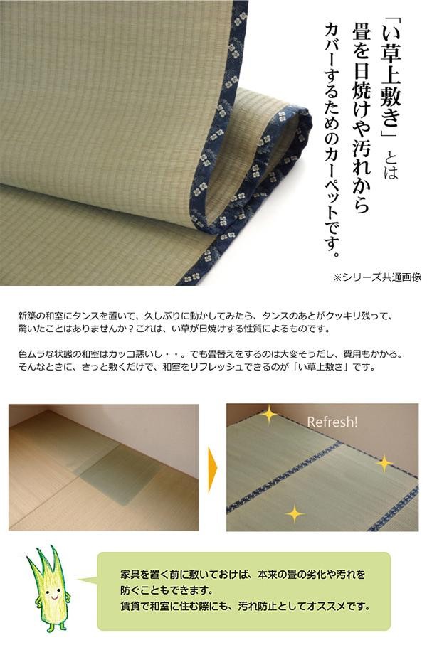 上敷きを敷くだけで畳のお部屋をリフレッシュ出来ます。日焼けしてしまった畳のリフレッシュに、新品の畳を汚さないためのカバーにご使用下さい。