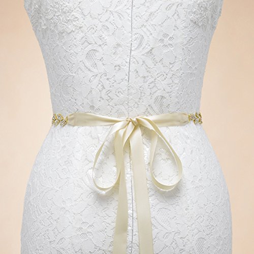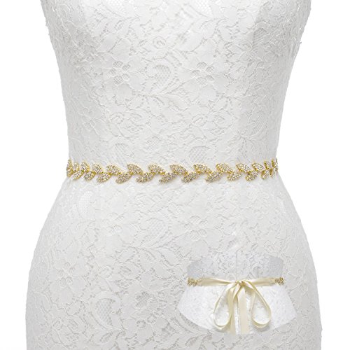 Remedios Tiny Gold Rhinestone Leaves Sash Belt Rhinestone HairBand set For Wedding Bridal Party Dresses,Champagne