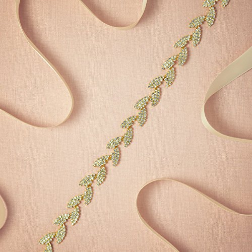 A bridal sash of tiny rhinestone studded leaves that cinch the waist with subtle sparkle