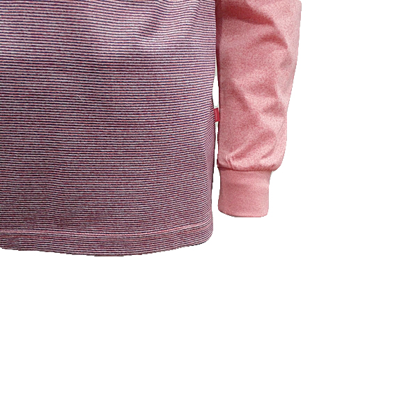 한기장 스트라이프 소재로 화사한 색감이 돋보이는 티셔츠 멜란지 컬러의 원사를 사용해 부드러우면서 자연스러운 코디 가능