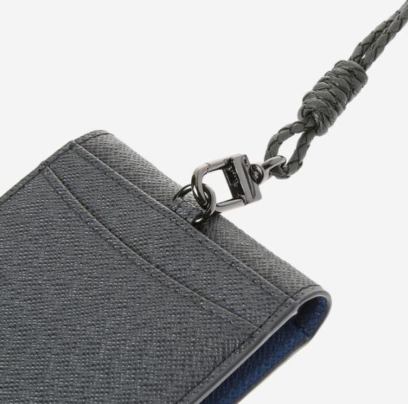 그레이 컬러에 안감이 블루 컬러로 배색되어 산뜻한 느낌을 연출하는 목걸이형 카드지갑 키홀더입니다.