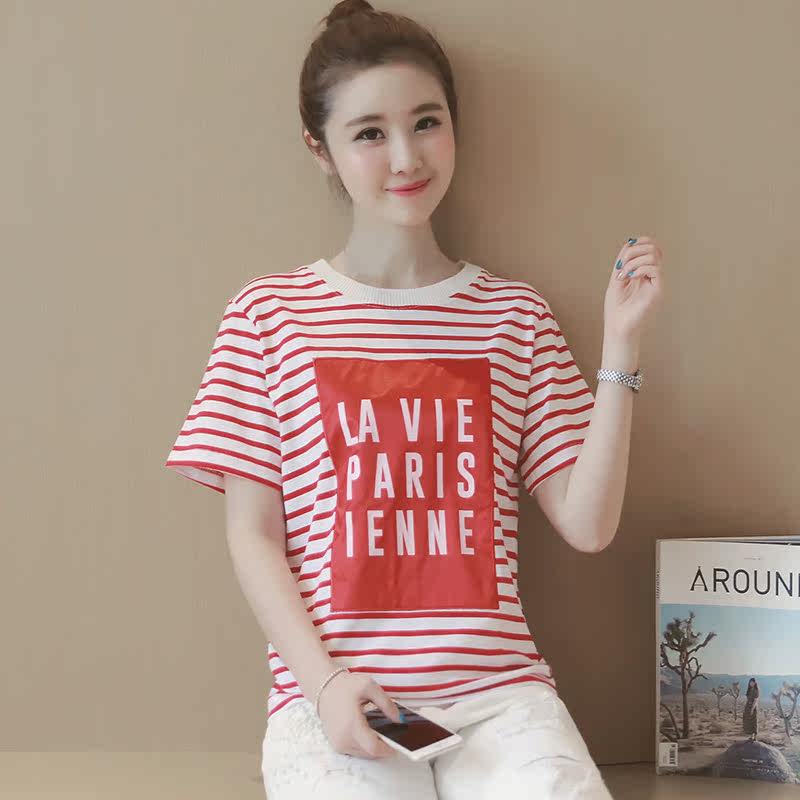 | 名称 | 字母贴布圆领七分袖条纹T恤 |