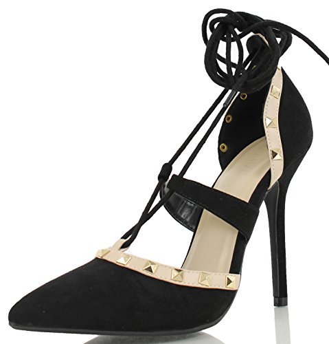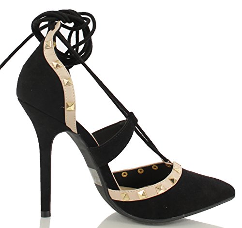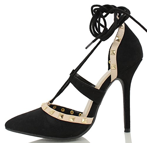 Wild Diva Women's Adora 126 Pointy Toe Lace Up Ankle Tie Studded High Heel