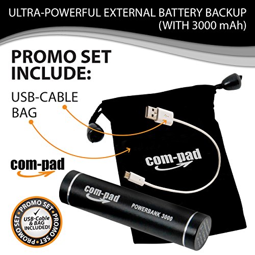 FITS IN EVERY POCKET AND BAG! - Compact design and super portable Powerbank. Supreme TRAVEL CHARGER for e. g. long flights, extended road trips or whenever you need to boost up the battery life of your mobile devices! This COM-PAD mobile charging station is your most helpful accessory and is often used as a substitute for a car charger, such as an iPhone car charger and a wall charger.