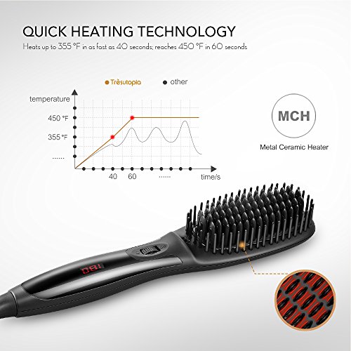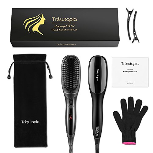 It's time to say goodbye to using a time-consuming flat iron when styling your hair at home. Simply stroke your hair with our straightening brush several times to achieve smooth and shiny results. The hairbrush effortlessly straightens your hair and smoothes frizz without causing any tangling. The Trèsutopia Lepunzel Hair Straightening Brush allows your hair to glow by delivering negative ions that repair hair cuticles.