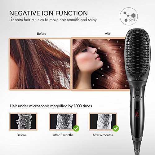 FAST HEAT& SAVES TIME: Heats up to 355 °F in as quickly as 40 seconds; straightens hair and smoothes frizz in just several strokes without damaging and tangling hair; negative ions repair hair cuticles to make hair smooth and shiny; saves more time compared to the traditional flat iron