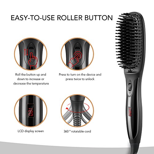 The hairbrush is designed for use worldwide with a wide voltage input of 100-240 V AC. Rest assured that you will be able to straighten your hair wherever you go.