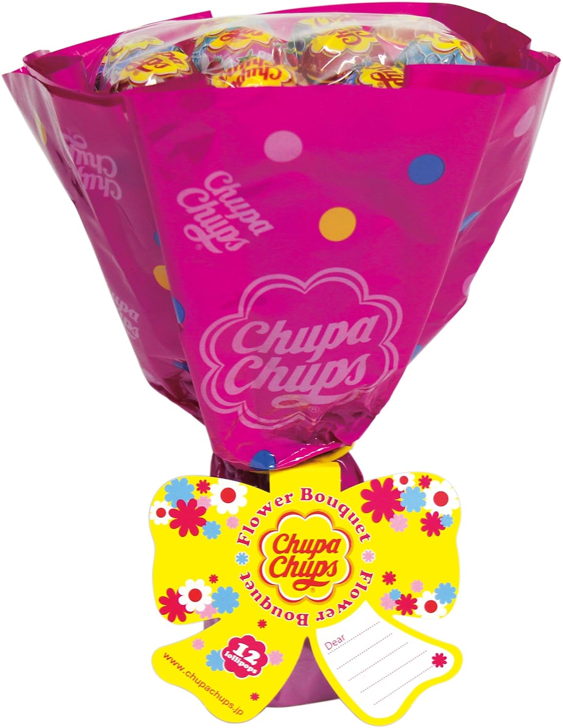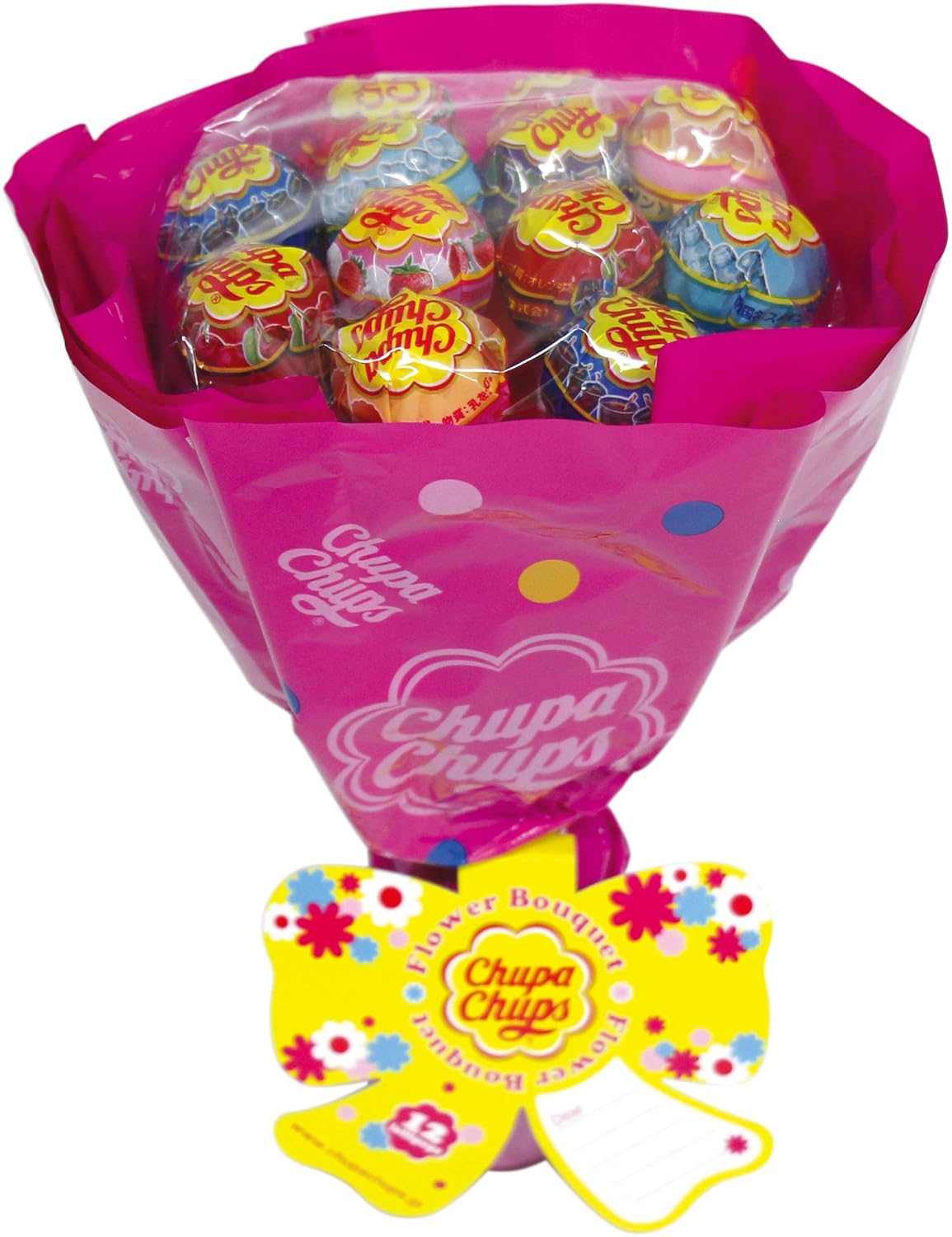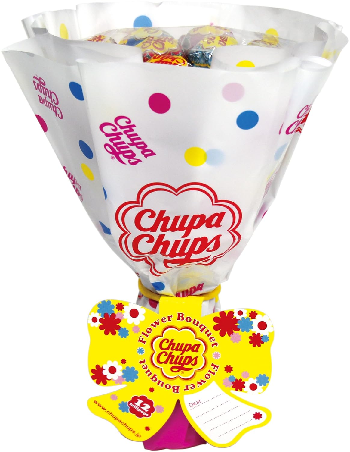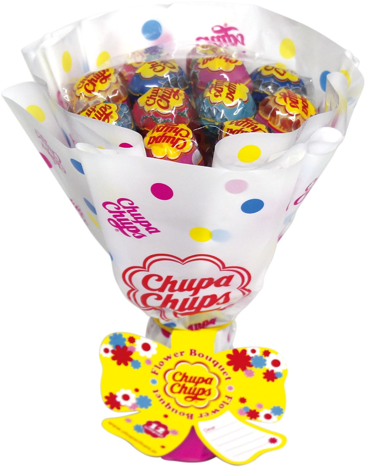 色々なフレーバーのチュッパチャプスを花束型に詰め合わせてラッピング。メッセージの書き込めるタグも付きで贈り物らしく仕上げています。包装デザインはレッド、ホワイトの2種類。キャンディフレーバーは人気上位で構成。ホワイトデー、入学・卒業・お誕生日などの祝いや母の日、歓送迎会等のプレゼントに最適です。【注意事項】4種類の中から、ランダムに入れております。希望のフレーバーがない場合がございますが、ご了承下さい。ラッピングは4種類ございますが、選択できかねますのでご了承下さい。