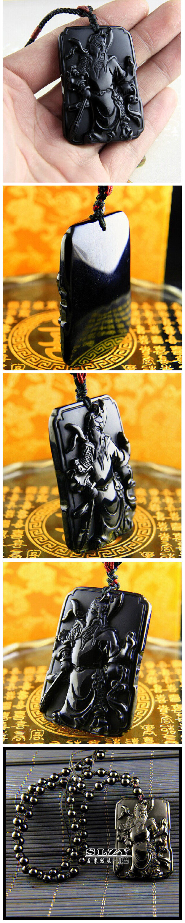磨砂黑曜石关公吊坠黑曜石武财神项链男