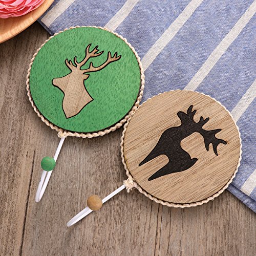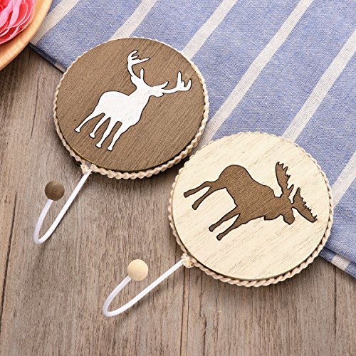 OUNONA 4pcs Wood Elk Strong Glue Stick Hook Creative Wall Hanging Sticky Hook Wall Door Coat Hook Hanger Holder