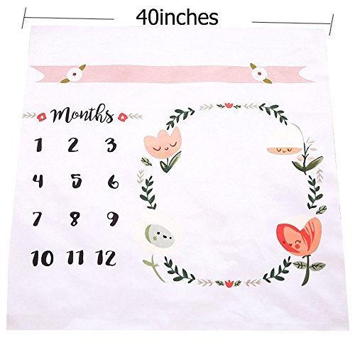 Trasfit Newborn Baby Monthly Milestone Blanket, Flower Crown Photo Prop Shoots Backdrop for Photography – 40Inch