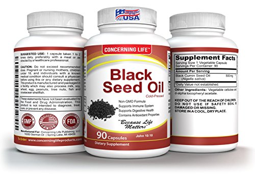 BLACK CUMIN SEED OIL CAPSULES SUPPLEMENT : Our Concerning Life Black Cumin Seed Oil contains pure Nigella Sativa Oil, and Omegas that have shown to help support immune system, healthy inflammatory response, digestive and cardiovascular health and a host of other health problems