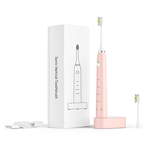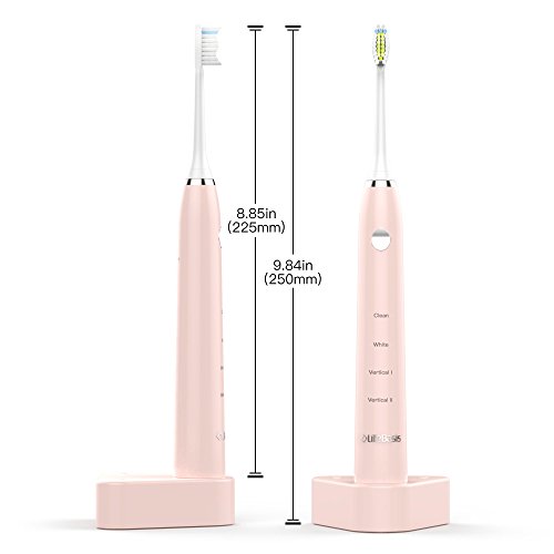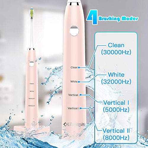 Life Basis Rechargeable Electric Sonic Toothbrush Professional Dental Gum Care for Sensitive Teeth with 4 Brushing Modes, USB Charger for Home and Travel (Pink)-Christmas Gifts for Families/Friends