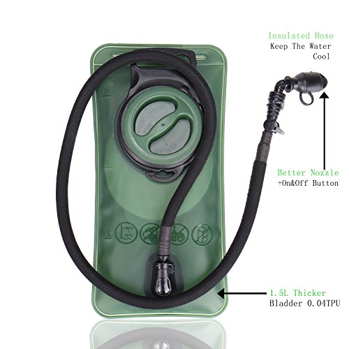 PREMIUM QUALITY 50Oz. BLADDER: Includes a 1.5 Liter/50 Oz. BPA FREE bladder which keeps you hydrated includes a wide screw cap so you can add ice cubes for an even cooler drink. It also keeps the water fairly cold. design with button on and off To ensure No leaking and Enough to get you through a day of hiking, cycling, running