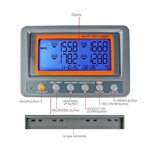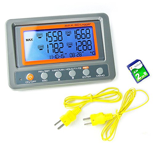 4 Channel K Type Thermometer SD Card Data Logger Thermocouple Temperature with Beeper and LED alarm