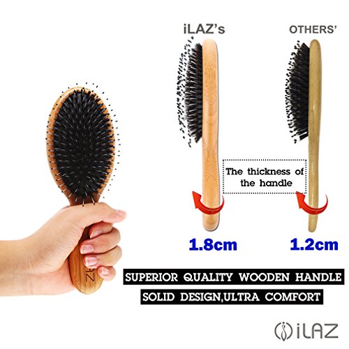 iLAZ Natural Boar Bristle Hair Brush Comb with Nylon pin/Wooden handle - Best for Styling, Straightening, Detangling and Thick Thin Fine Straight Curly Wavy...