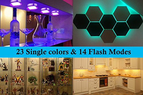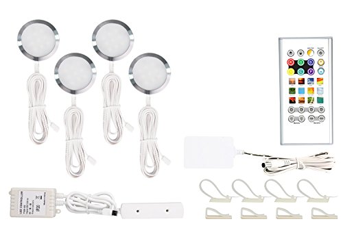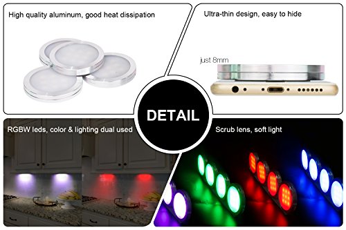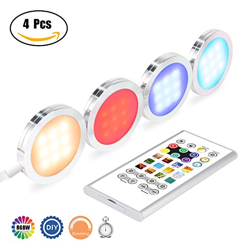 Pangtong Villa Under Cabinet Lighting - RGBW Led Lights for Home Kitchen Decorations with Remote - DIY Color Timing Function Puck Lights,Closet Lights,Silver 4-Pack