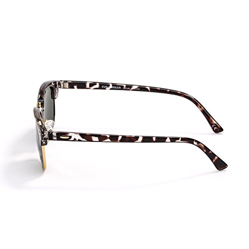 Plastic Frame Color:Crystal Tortie;Metal Frame Color:Shiny Gold;Arm Color:Crystal Tortie;Rivet Trim:Gold;Lens Color:Green