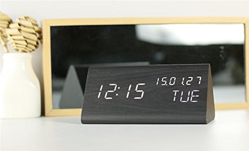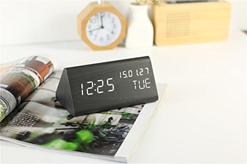 Studio : TRADE® Publisher : TRADE® Binding : Electronics Product Description Display Mode DP-1: Time temperature rotation display/ Display Mode; DP-2: Fixed time display. This alarm clock can automatically or manually adjust brightness, avoiding bright display can not fall asleep. Fashion wooden alarm clock, placed in the living room, bedroom, hotel rooms and other places are very matched and aesthetic. Specification: Product color:Black Wood White Light Product material:MDFPVC Shape: Triangle Product size: 6*3.15*2.7inch/150*80*70mm Package size: 6.7*2.2*3.5inch/170*55*90mm Weight: 0.66lb/300g Power Suppply:USB Cable (Included) and 4*AAA batteries(Not included) What's in your box? 1 * 3D Alarm Clock 1 * User Manual 1 * USB Cable Note: Due to wooden made clock, please use the clock in dry area. Please choose the compatible adapter. If LED display keeps ON and only powered by batteries, batteries are easy to waste (Works around 3 days). Please use the USB cable replaces the batteries to charge your clock.